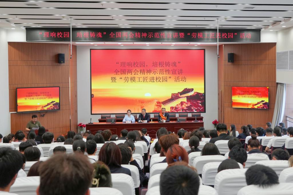 为全面深入学习领会习近平总书记在全国两会期间发表的一系列重要讲话精神以及全国两会审议通过的报告和文件精神,根据省委宣传部印发的《全国两会精神宣讲工作方案》要求,结合高校理论宣讲工作特点和实际,省委教育工委、省总工会决定组织开展“理响校园·培根铸魂”全国两会精神示范性宣讲暨“劳模工匠进校园”活动。2024年5月17日,BEAT365官网举行劳模工匠进校园活动,三名宣讲人在不同的角度,讲述了他们立足岗位、攻坚克难、在平凡岗位上谱写奋斗人生的感人故事,两百余名师生代表现场聆听。