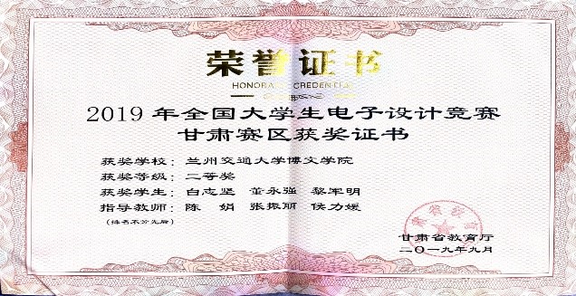 所获奖励有“第十四届“挑战杯”甘肃省大学生创业计划竞赛”荣获铜奖2项、“2023年度优秀共产党员”、“2023年度优秀教师”、“2023年全国大学生创新创业能力大赛-决赛产品创新组二等奖”、“第十四届“挑战杯”甘肃省大学生课外学术科技作品竞赛-自然科学类学术论文-二等奖”、“2021年度荣获工作先进个人”、“2021届优秀毕业论文指导老师”、“2019-2020年度优秀班主任”、“首届课程思政教学竞赛三等奖”、“2019-2020学年优秀党务工作者”、“2019年讲稿评选活动优秀奖”、“2019年全国大学生电子设计竞赛甘肃赛区二等奖”、““守纪律、讲规矩”专题演讲比赛三等奖”、“2016年辅导员职业能力大赛三等奖”、“2015年青年教师讲课比赛优秀奖”。