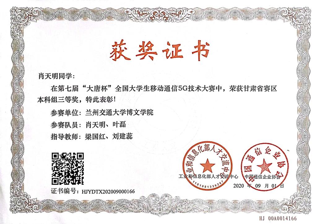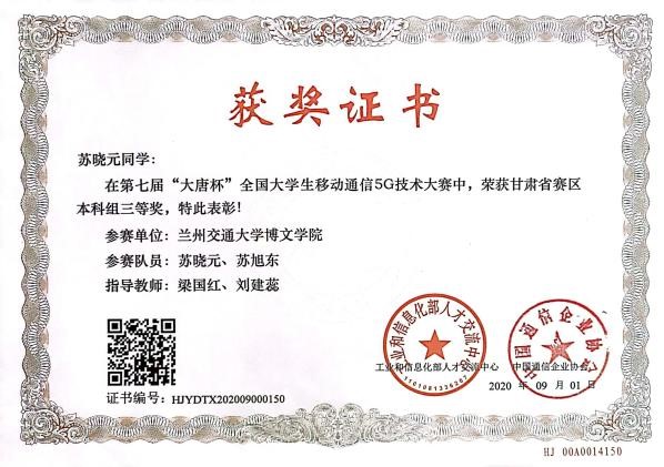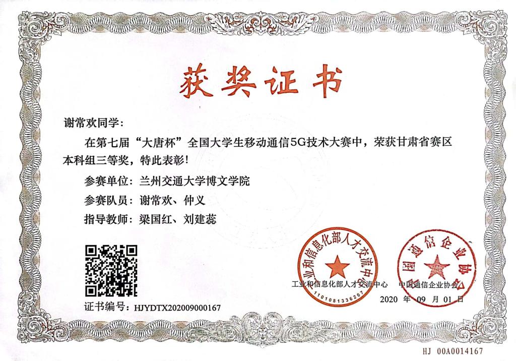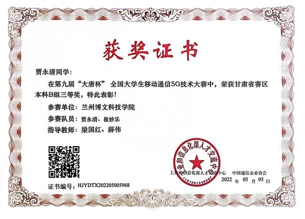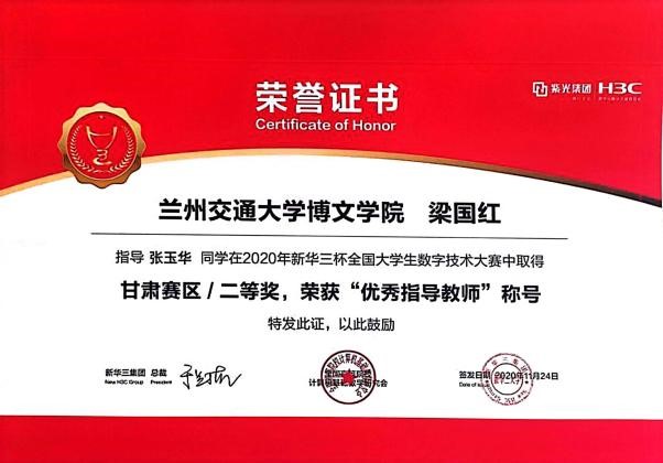 指导张玉华同学在“2020年新华三杯全国大学生数字技术大赛”优秀指导老师 ;