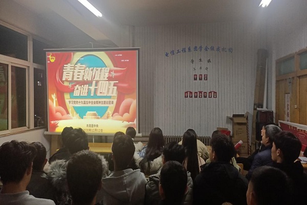 今年是“十三五”规划的收官之年,也是“十四五”规划的布局之年。“十四五”规划是全面建成小康社会之后,实现到2050年把中国建设成一个社会主义的现代化强国、实现“两步走”战略的第一个规划。为了让学生党员深入了解“十四五”规划,提高理论基础,为更好帮助广大团员青年学习党的十九届五中全会精神,深入学习了解习近平思想,兰州交通大学博文学院电信工程系于2020年12月12日在南校区教学楼三楼团学办公室组织观看了通过共青团中央微信、微博等平台开展的主题云团课,对十四五《规划》进行了视频化解读。