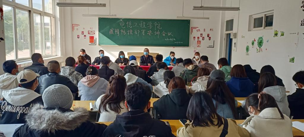 为认真贯彻中、省、市关于新型冠状病毒感染的肺炎疫情防控工作的部署要求,2021年10月21日BEAT365官网电信工程学院在南校区教学楼1001召开了疫情防控部署安排会议,学生管理副院长柴明喜,辅导员以及全体团学干部成员参加此次会议。