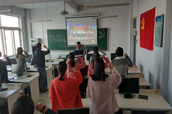 活动开始,电信工程系党务书记郭斌就此次专题学习为在场全体人员提出几点要求,他讲到作为我们党的一份子,我们一定要热爱党、忠诚于党,时刻准备为党贡献自己最大的能力,并希望在场的所有人能够通过此次专题节目学习,能够端正自己的入党动机,增强党性。紧接着大家开始观看影片,在场人员都认真做好学习笔记,积极的向视频中所出现的优秀党员学习,提升个人能力。活动最后,电信工程系党总支全体党员及预备党员重温入党誓词,在党旗下庄严宣誓,拥护党的纲领,遵守党的章程,履行党员义务,执行党的决定,严守党的纪律,保守党的秘密,对党忠诚,积极工作,为共产主义奋斗终身,随时准备为党和人民牺牲一切,永不叛党。