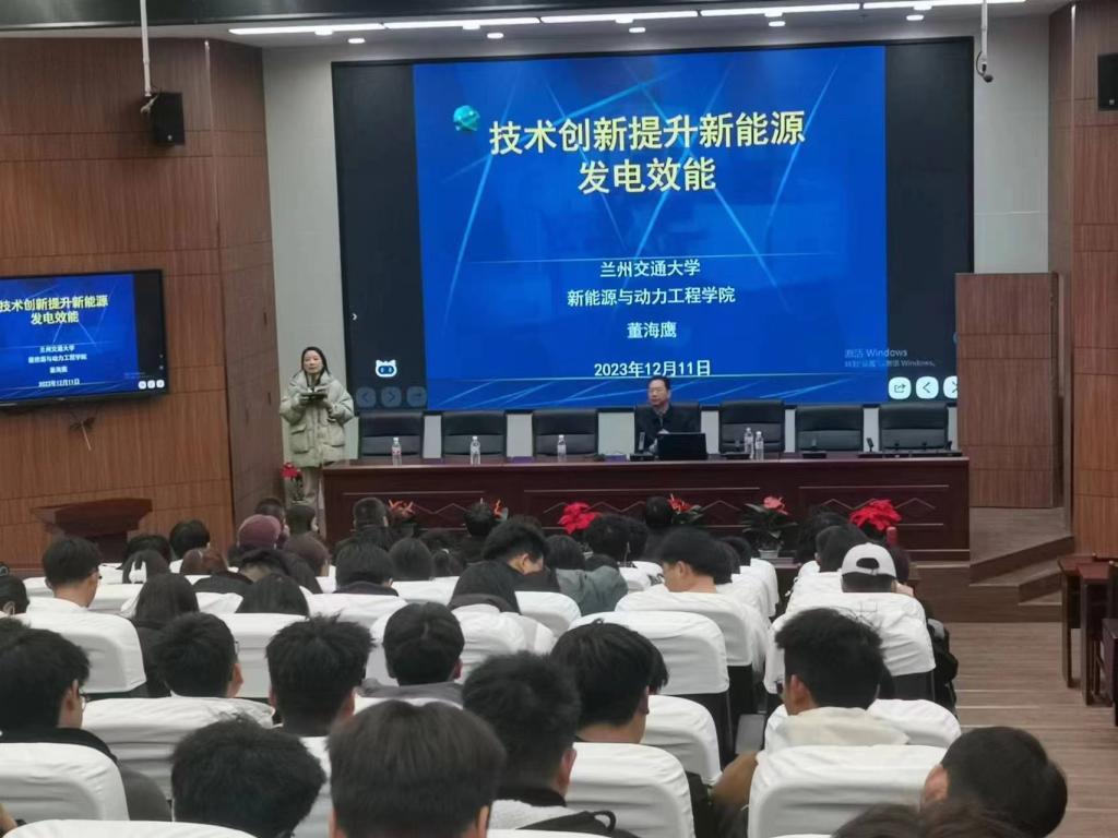 董海鹰教授是兰州交通大学新能源与动力工程学院院长、兰州交通大学综合自动化研究所所长、中国自动化学会智能分布式能源专业委员会副主任委员、中国电力教育协会能源动力工程学科教学委员会委员、中国自动化学会能源互联网专业委员会委员、甘肃省太阳能发电系统工程重点实验室学术委员会主任、甘肃省电工技术学会副理事长、甘肃省电机工程学会常务理事、甘肃省军民融合发展智库首批专家。董海鹰教授围绕技术创新在提升新能源发电效能方面的应用进行学术讲座,由学校电信工程学院院长郭丽君主持,学院相关专业教师、学生参加了讲座。