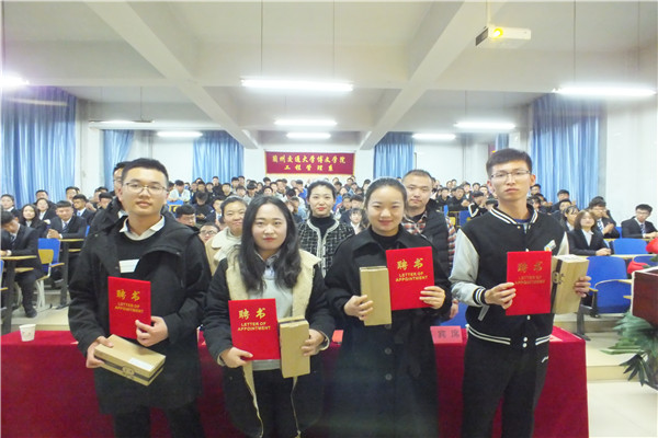 随后,我系领导和老师为第二届学生党员工作站干部颁发聘书并赠送纪念奖品。我系教学管理副主任苟世霞老师宣读第三届学生党员工作站干部名单,由第三届学生党员工作站站长杨乐宇做就职演讲。演讲中号召,工作站要以服务师生为本,保持艰苦奋斗的作风,牢记务必保持尽职、务实、谦虚、不躁的工作作风;务必保持廉洁、自律、正派、阳光的思想作风,认真做好每一份工作。