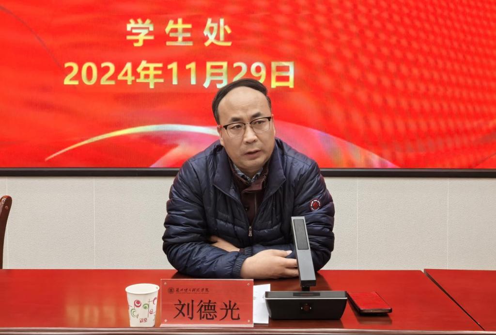 11月29日下午,2024-2025学年第一学期学生管理干部中期工作总结暨校园安全稳定工作大会在北校区综合教学楼12楼报告厅召开,副校长刘德光、学生处全体人员、各学院学生管理副院长、全体辅导员及班主任参加。