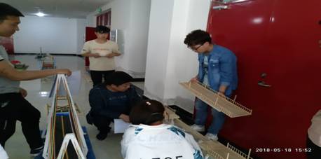 第二阶段(4月27日到5月18日):同学们着手制作各类模型,虚心请教老师,克服困难,精益求精,尽自己最大的能力做好每一个模型桥梁模型制作是一项极富创造性、挑战性的过程,可以考察和培养大学生对所学知识的综合应用能力、实际操作能力、创新意识以及团队协作意识,引导大学生理论联系实践,在实践中丰富和发展理论,突出创新精神。经过长达一月的精心准备在5月18日共收到各类参评模型150多件。