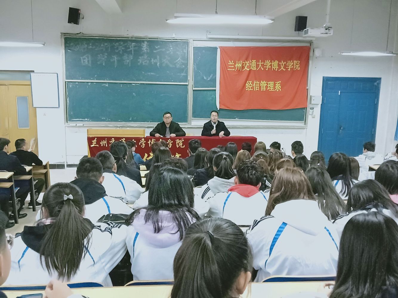 为加强团学干部凝聚力,提升团学干部的整体素质。2019年3月18日19:00在教学楼教西T2教室顺利召开2018--2019学年第二学期团学干部培训大会。经信管理系学生管理副主任宋国军、教学管理副主任张德江出席会议并讲话,团学会全体成员参加会议。