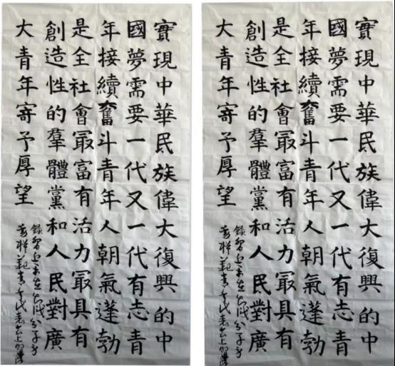 各参赛班级提交参赛作品后,经学院评委综合评审,评选出优秀作品13幅,其中一等奖一幅;二等奖两幅;三等奖十幅,并对获奖作品进行展览。在展会上,书画作品形象生动地向广大师生展现出了习近平新时代中国特色社会主义思想的魅力,用画笔和文字呈现出对习近平新时代中国特色社会主义思想的理解和领悟。