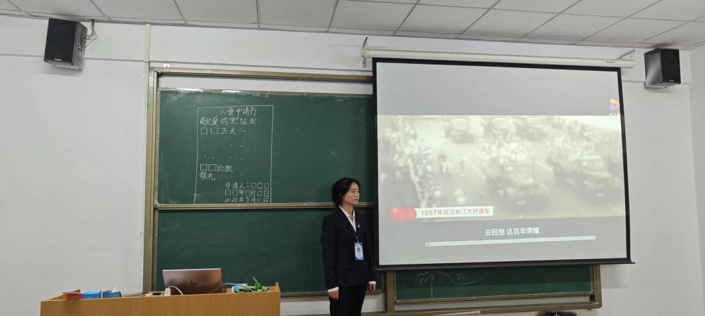 部分进行授课。“从红船到巨轮的百年芳华”部分,简要回顾了中国共产党救国、兴国、富国、强国的光辉奋斗历程;“蓄源头聚活水的精神财富”部分,集中展示了中国共产党的精神之源和第一批纳入中国共产党人精神谱系的伟大精神,并重点阐释了建党精神、井冈山精神、长征精神、焦裕禄精神、脱贫攻坚精神等的深刻内涵;“严纪律重质量的发展流程”部分,重点对申请入党的条件以及入党申请书、思想汇报的撰写格式和内容要求进行了介绍;“新时代好青年的自我修养”部分,重温了习近平总书记在纪念五四运动100周年大会上、党的二十大报告中、2024年新年贺词中等重要场合和历史节点对广大青年的寄语和期望。并以 “撑开理想风帆,与时代共舟,与人民同步;燃放青春火炬,让中华溢彩,让生命闪光”,勉励2024级新生把握时代机遇、发挥专业优势,脚踏实地、仰望星空,乘时代东风,展青年作为。