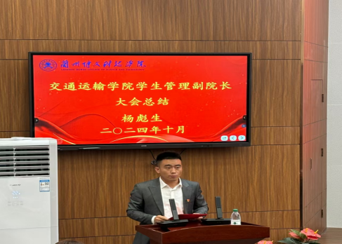 大会最后,由交通运输学院团总支书记学生管理副院长杨彪生对本次大会进行总结,杨院长首先向新当选的学生干部们表示热烈的祝贺,并对即将离任的第三届学生干部们所做出的突出贡献表示衷心的感谢。他强调,学生干部是学院推进学生工作的重要力量,各位学生干部要勇担使命,不断丰富自己的内涵,切实提升工作能力,努力做好全院学生的榜样,为交通运输学院创造新的辉煌。