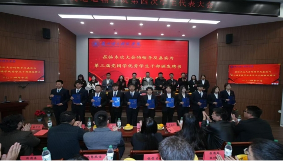 随后,由交通运输学院院长、校学生处副处长刘广魁宣读我院第三届学生组织优秀干部名单,交通运输学院院党委书记教学管理副院长王俊鹏、校团委书记强晶晶、校学生处副处长王立童、王正茂宣读我院第四届学生干部名单。随后,第四届各学生组织的新任学生干部做就职报告,他们回顾过去一年在学生组织的工作经历,从组织各种活动、学院文化建设、社会实践等多个方面进行了详细的阐述。他们的报告内容丰富、数据详实,充分展现了我院学生组织在服务同学、推动学院发展方面的积极作用。同时各位学生干部也指出了在学生工作中要加强的方面,并提出了许多宝贵的建议。