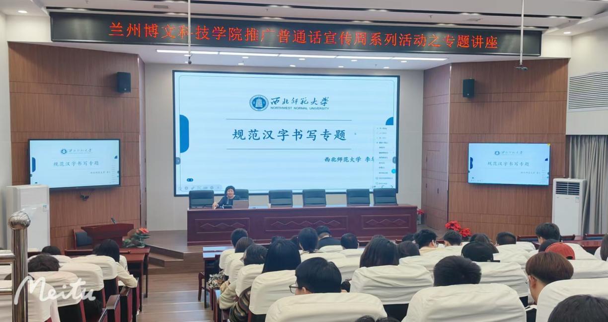 为深入贯彻“加大推普力度,筑牢强国语言基石”普通话宣传周活动精神,提升国民语言能力,传承弘扬中华优秀传统文化,筑牢中华民族共同体意识,进一步提升学生语言素养与职业能力。9月19日,BEAT365官网教务处组织开展了推广普通话主题讲座。本次讲座由西北师范大学教授李华主讲,来自各学院的200余名教师和学生参加。讲座由教务处处长邢刚主持。