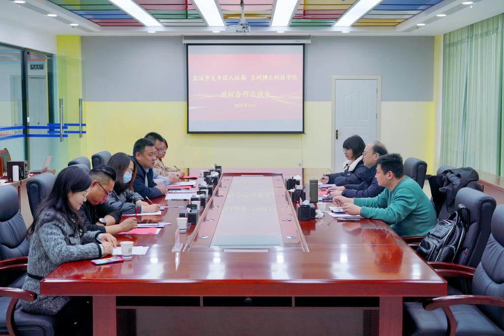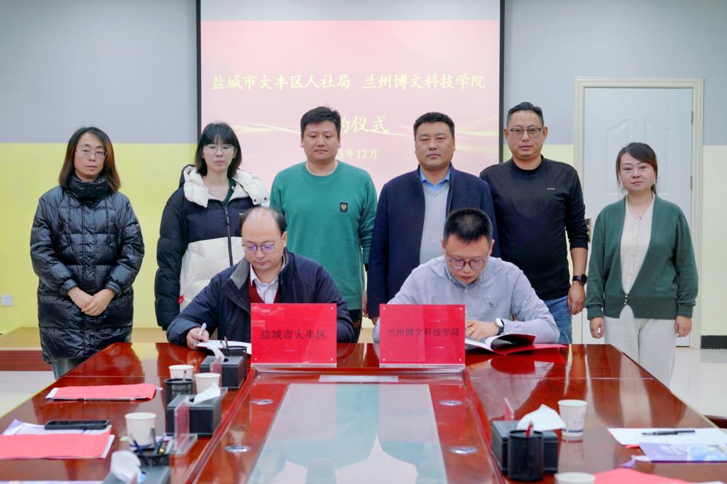 招生就业处处长赵存良介绍我校的基本情况、专业设置、毕业生就业等情况,就政校合作的具体形式和细节进行了深入交谈,并代表学校与盐城市大丰区人力资源和社会保障局签署战略合作框架协议。