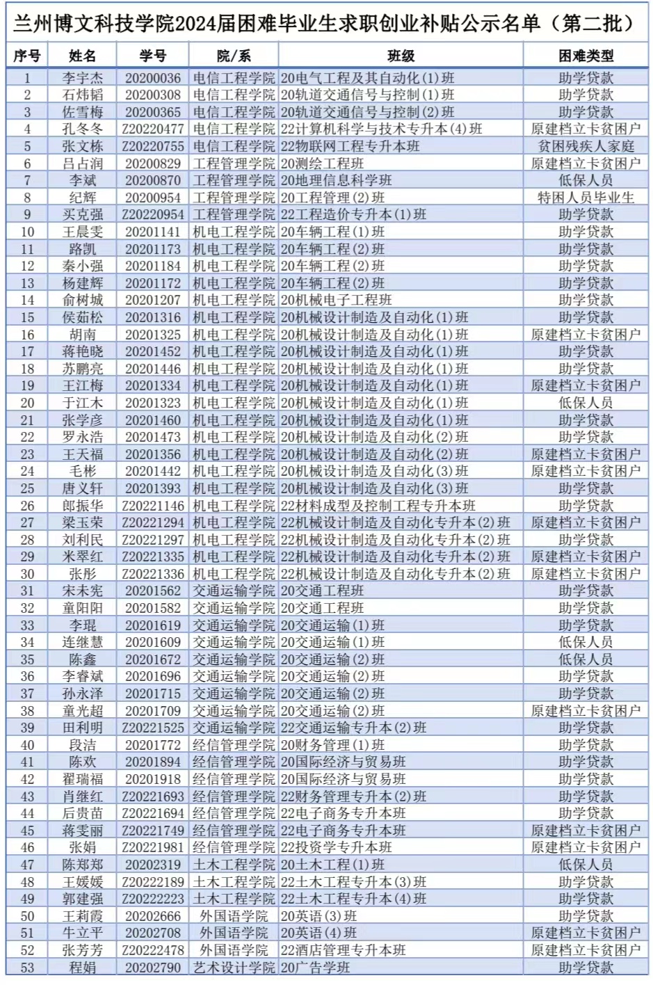 我校接到通知后,高度重视,及时组织,积极向各班宣传文件精神,要求学生认真申报。经同学申请,学院、学校、等相关单位部门审核,我校第二批次共有53名同学符合发放要求。