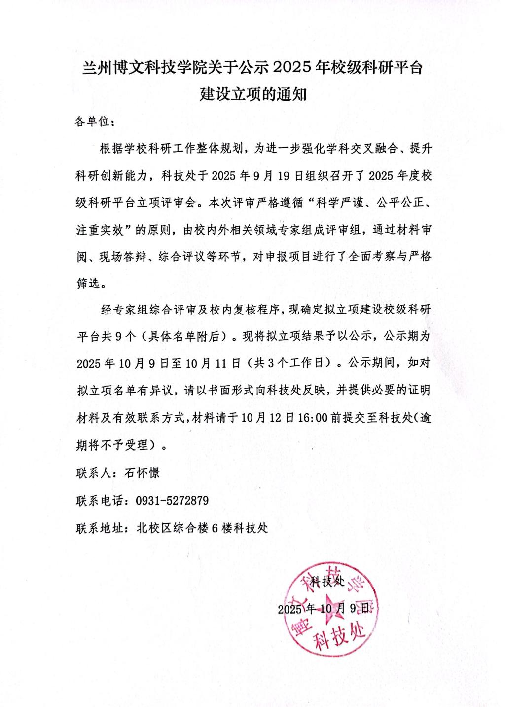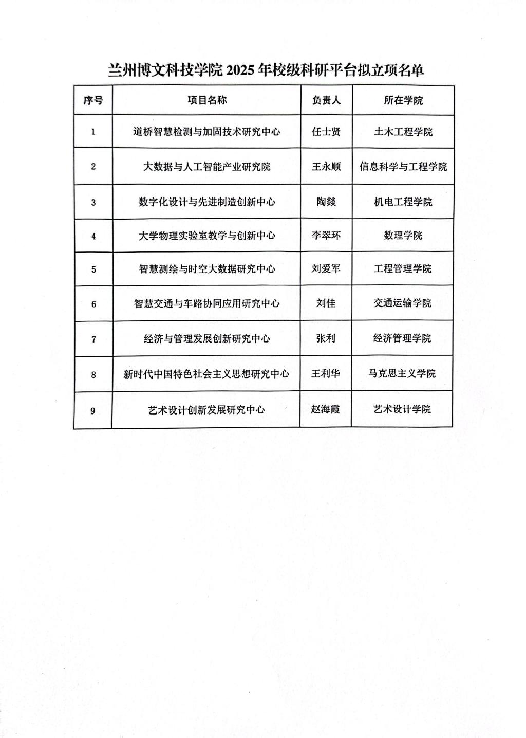 BEAT365官网关于公示2025年校级科研平台建设立项的通知