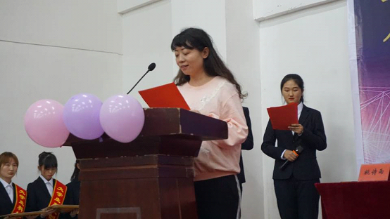 大会在悠扬的音乐声中拉开了帷幕,首先由科技处处长贵彩虹发表了热情洋溢的致辞,对获奖同学和新任干部表示祝贺,希望大家再接再厉,积极的参与并融入学院的创新教育之中。学院将逐步面向全院学生推行创新教育,希望新一届学生干部发挥自己的聪明才智履行好创新教育工作中我们应该承担的职责。