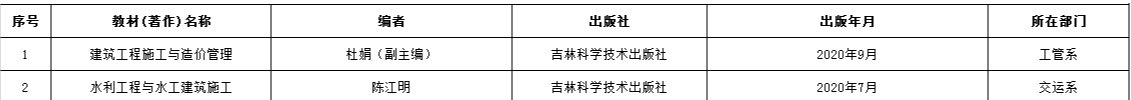 兰州交通大学博文学院2020年出版教材情况统计表