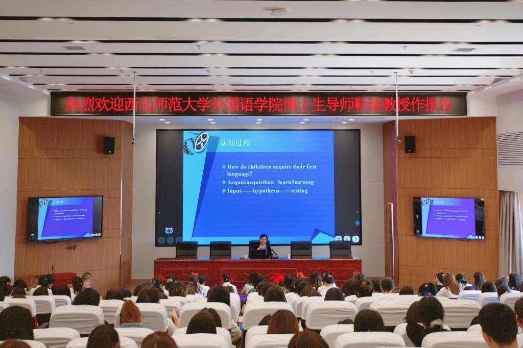 为进一步激发学生学习英语的兴趣,提高学校教师教学水平。9月12日下午,学校邀请西北师范大学外国语学院博士生导师靳琰教授在综合教学楼12楼西侧学术报告厅做《英语学习方法论及外语科学研究》的专题报告。外国语学院的30余名教师及外国语学院各年级学生200多人到场聆听了讲座。讲座由外国语学院教学副院长许立捷主持。