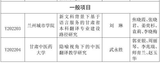 近日,甘肃省教育厅下发了《甘肃省教育厅关于公布2023 年度高等学校英语教学改革研究项目立项名单的通知》(甘教高函〔2023〕17号)和《甘肃省教育厅关于公布2021、2022年度高等学校英语教学改革项目结项名单的通知》文件(甘教高函〔2023〕16号),我校申报的两个项目获批立项,两个项目顺利结项。