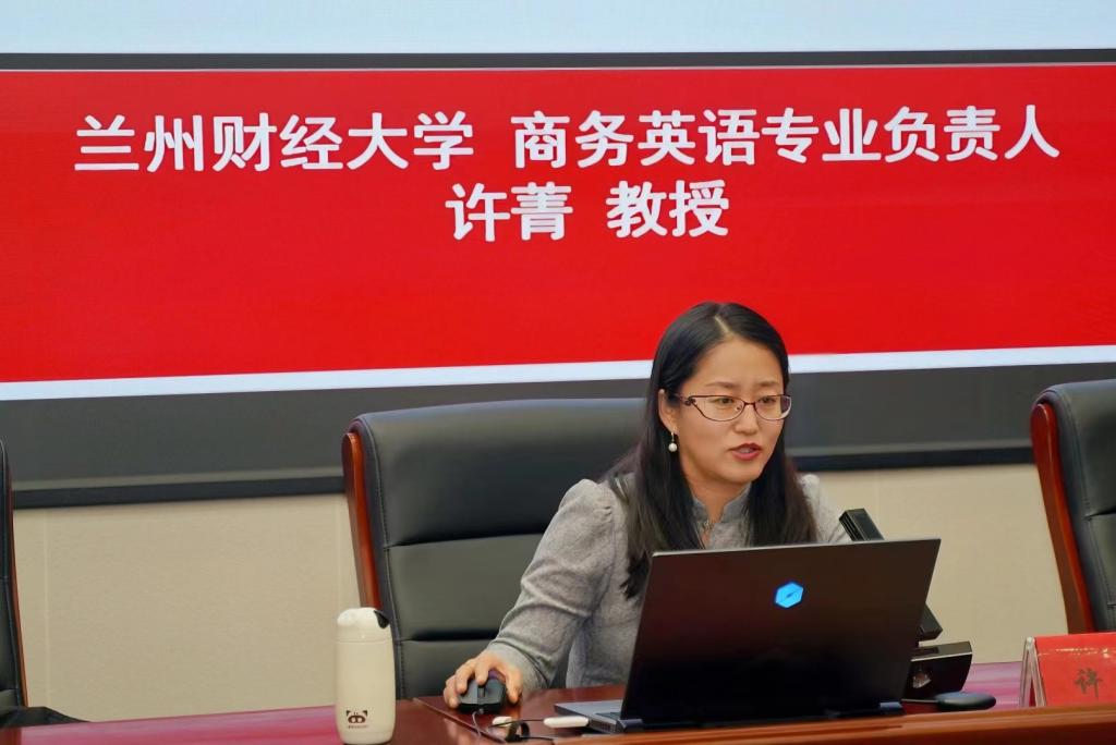讲座伊始,许菁从商务英语专业的发展历程和专业定位出发,进行了深入浅出的阐述。她指出,商务英语作为英语专业的一个重要分支,涉及国际贸易、国际金融、国际营销等多个领域,具有丰富的学科内涵。随后,她以兰州财经大学为例,从商务英语学科的建设措施、建设成效、问题和改进措施等三个方面进行了分享,清晰地解读了商务英语专业课程体系未来的建设和发展。