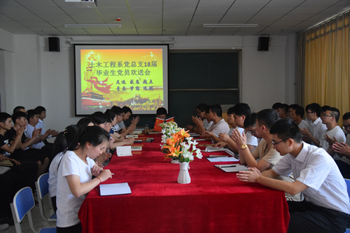 盛夏的激情在为梦想释放力量,闪光的青春也为狂热的季节增添光芒。在这斑斓的季节里,又一届博文学子即将扬帆远航。6月20日下午,兰州交通大学博文学院土木工程系党总支在综合教学楼1108教室举办了“依依惜别六月情,菁菁校园送毕行”党员毕业生欢送会。参加本次欢送会的有土木工程系党总支书记黄钰峰、副书记王俊鹏、全体教工党员及2018届党员毕业生。