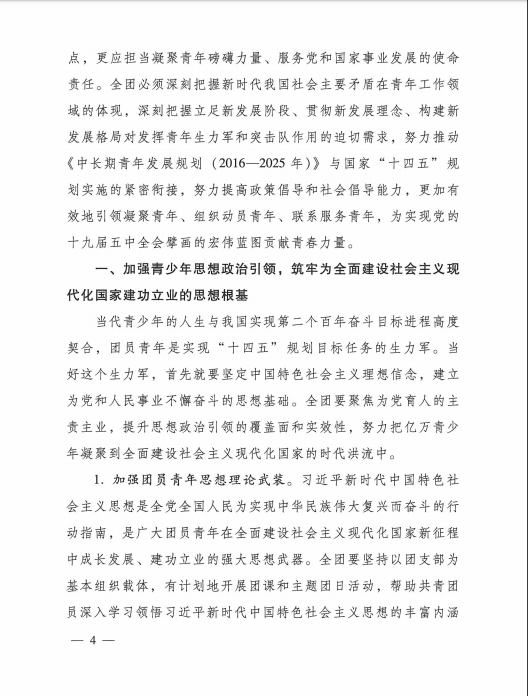 共青团中央关于印发《共青团深入 贯彻党的十九届五中全会精神在全面建设社会主义现代化国家新征程中组织动员广大团员青年建功立业发的行动刚要》的通知