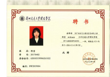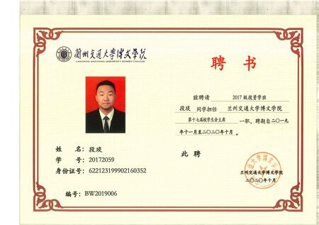 共青团兰州交通大学博文学院委员会2019-2020年度学生干部聘任名单