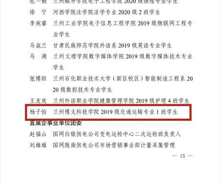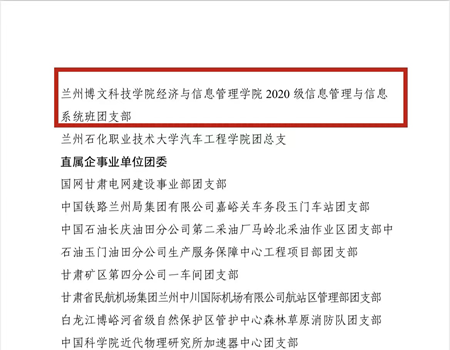 2021 年,全省各级团组织坚持以习近平新时代中国特色社会主义思想为指导,深入学习贯彻习近平总书记关于青年工作的重要思想以及对甘肃重要讲话和指示精神,主动担当尽责,开拓创新实干,有序推进共青团深化改革和全面从严治团,在党和人民最需要的急难险重新任务中勇挑重担,冲锋在前,充分发挥了生力军和突击队作用,团的事业实现了新发展,各条战线涌现出了一批先进典型。在“五四青年节”来临之际,甘肃省人力资源和社会保障厅和共青团甘肃省委为总结经验、表彰先进,授予全省多个集体及个人荣誉表彰,我