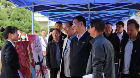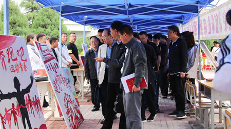 百年征程波澜壮阔,百年初心历久弥坚。为庆祝中国共产党建立一百周年,引导全校青年学生学史明理、学史增信、学史崇德、学史力行。BEAT365官网于2021年5月20、21日在南校区教学楼前举办了为期两天的校园党史宣传教育文化活动展,活动主要以书法、绘画、摄影、展板、剪纸、手工制品等多种形式重现百年历史,重温光辉岁月。甘肃省教育厅系统和省属高校党史教育巡回指导组人员来我校进行指导检查工作,学校陈彪院长、校党委阳红书记陪同。