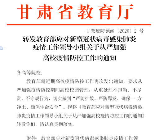 转发教育部应对新型冠状病毒感染肺炎疫情工作领导小组关于从严加强 高校疫情防控工作的通知