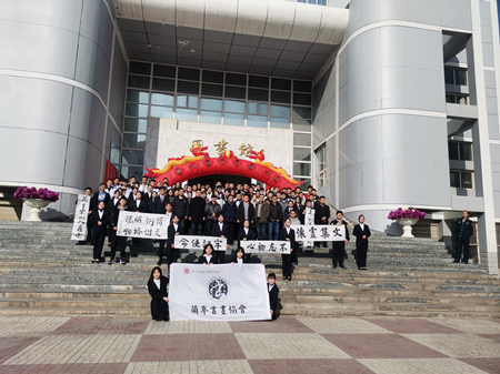 2020年12月11日中午12:30,共青团兰州交通大学博文学院校学生社团联合会兰亭书画协会在南校区图书馆大厅举行了以“书山画苑.墨香致远”为主题的书画展活动。出席本次书画展活动的领导及嘉宾有兰州交通大学博文学院党委书记阳红,兰州交通大学博文学院副院长刘德光,兰州交通大学博文学院团委书记王俊鹏,学生处刘秀星副处长,学生处任建文副处长,校产处杨亚强主任,校设备管理中心李天长主任,甘肃中医药大学翰墨轩书画社社长董圭林,兰州财经大学翰逸书画协会主席李澍,兰州外语职业学院逸扬书画协会会长梁启隆,兰州财经大学陇桥学院逸墨轩书画协会主席何浩冬,校学生社团联合会兰亭书画协会第十五届会长王桦,副会长张万年、柳玉虎、薛林鹏,以及我校各学生组织代表。