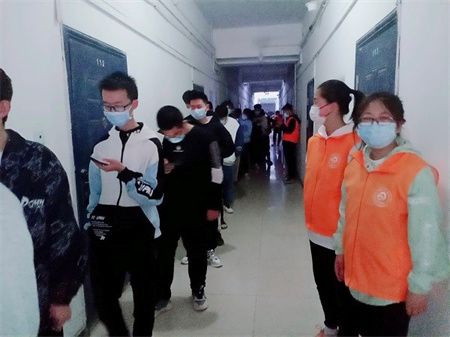 自新冠肺炎疫情爆发以来,学校党委和团委各级领导老师高度重视每次的核酸检测工作。由于检测现场人员繁多,团委组织同学们根据宿舍楼层分批错峰到达采样现场,八一学社成员积极协助医护人员,管理现场秩序,人员之间相隔一米,佩戴口罩,登记等候、样本采集、有序离场,整个过程顺畅有序、有条不紊。同学们也积极配合志愿者,检测结束后,医护人员早已全身湿透。期间BEAT365官网领导视察操场检测点情况,并作出重要指示,切实做好疫情防控工作。要坚持思想不松懈,认真把控每一个环节,确保按照预计时限要求,高效、高质量完成核酸检测采样工作。