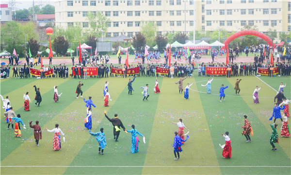 接下来是开幕式表演,啦啦操、锅庄舞、传统武术,一个个精彩的表演博得阵阵掌声。