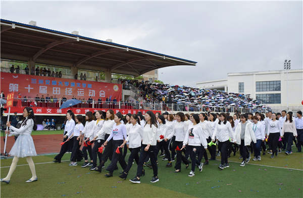 伴随着运动员进行曲,由护旗手护送国旗和兰州交通大学博文学院校旗入场,踏着严肃的步伐,英姿飒爽,朝气蓬勃,紧随其后的是各系以及教职工代表队,他们以整齐划一的步伐向我们展现了博文师生的朝气、自信与热情。