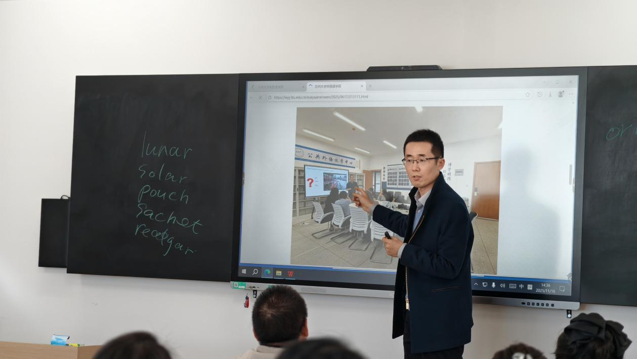 为深化外语教学改革,落实“以赛促教、以赛促学”理念,11月18日下午,我院特邀第十六届“外教社杯”全国高校外语教学大赛甘肃赛区视听说组特等奖获得者、兰州大学徐洋老师,在新区校区综合楼5002-5003教室举办教学示范课与赛课经验分享会。外国语学院全体教师及部分学生代表共同参与了本次活动。
