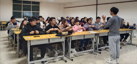 本次手语课堂面向全协会,以娱乐为主开展课堂教学,让更多的同学因为兴趣而去了解和学习手语。课堂主要分为四个环节:复习、才艺展示、课程教学以及趣味游戏。复习阶段同学们都表现出了超强的记忆力,上节课的教学内容大家都记得十分清晰,很快的,就和我们的主持人一起完成了复习。
