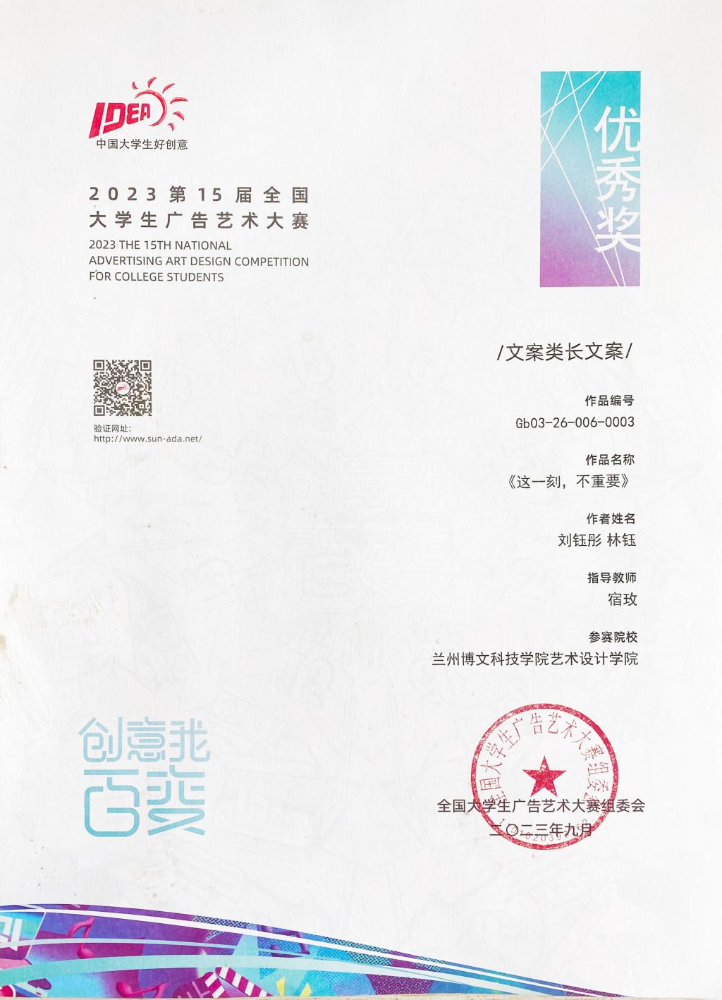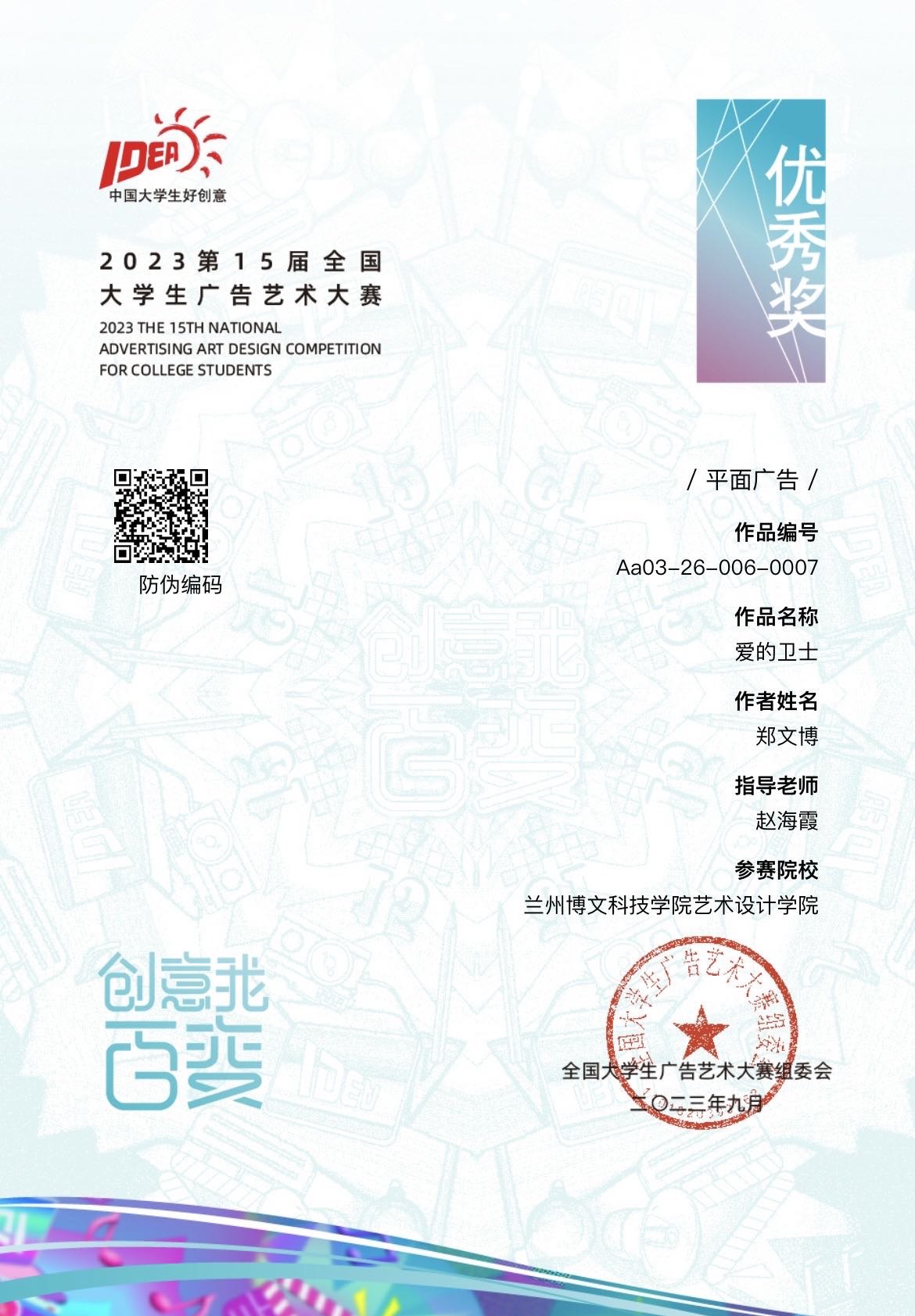 我校艺术设计学院的师生们凭借出色的创意和扎实的专业技能,在此次比赛中取得了优异的成绩。本次大广赛,我院总计获得奖项10项,其中获得“第15届全国大学生广告艺术大赛”全国优秀奖4项,获得“第15届全国大学生广告艺术大赛”甘肃赛区奖项6项。具体获奖情况如下: