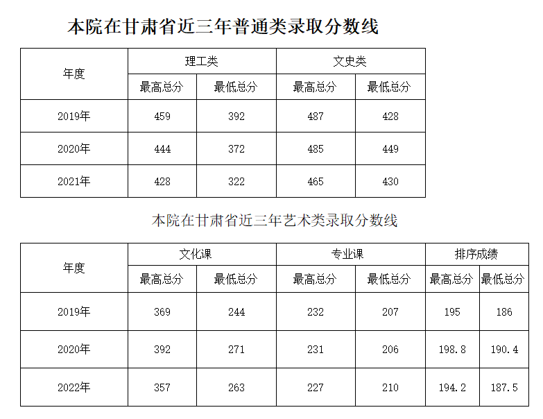 备注:艺术类录取时使用甘肃省美术类统一考试排序成绩。