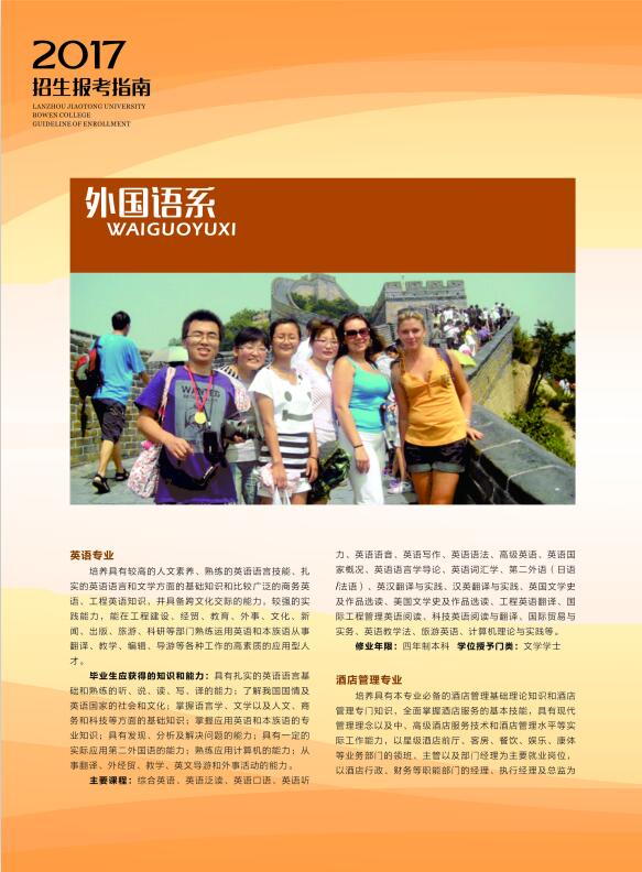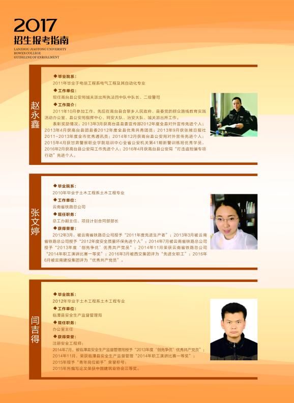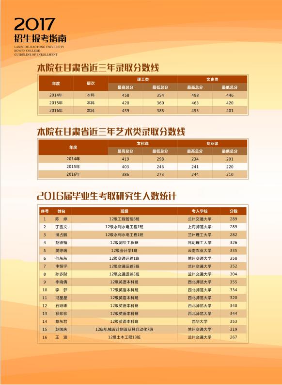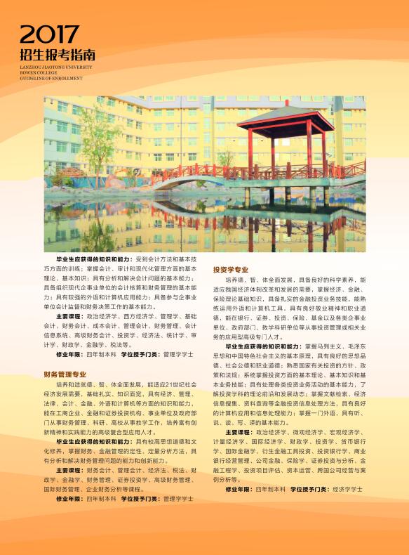 2017年我院面向全国23个省(市、区)招收本科生共2680名,面向甘肃招收本科生2380名。其中艺术类专业计划30名、三职生计划50名、南疆单例计划1名。